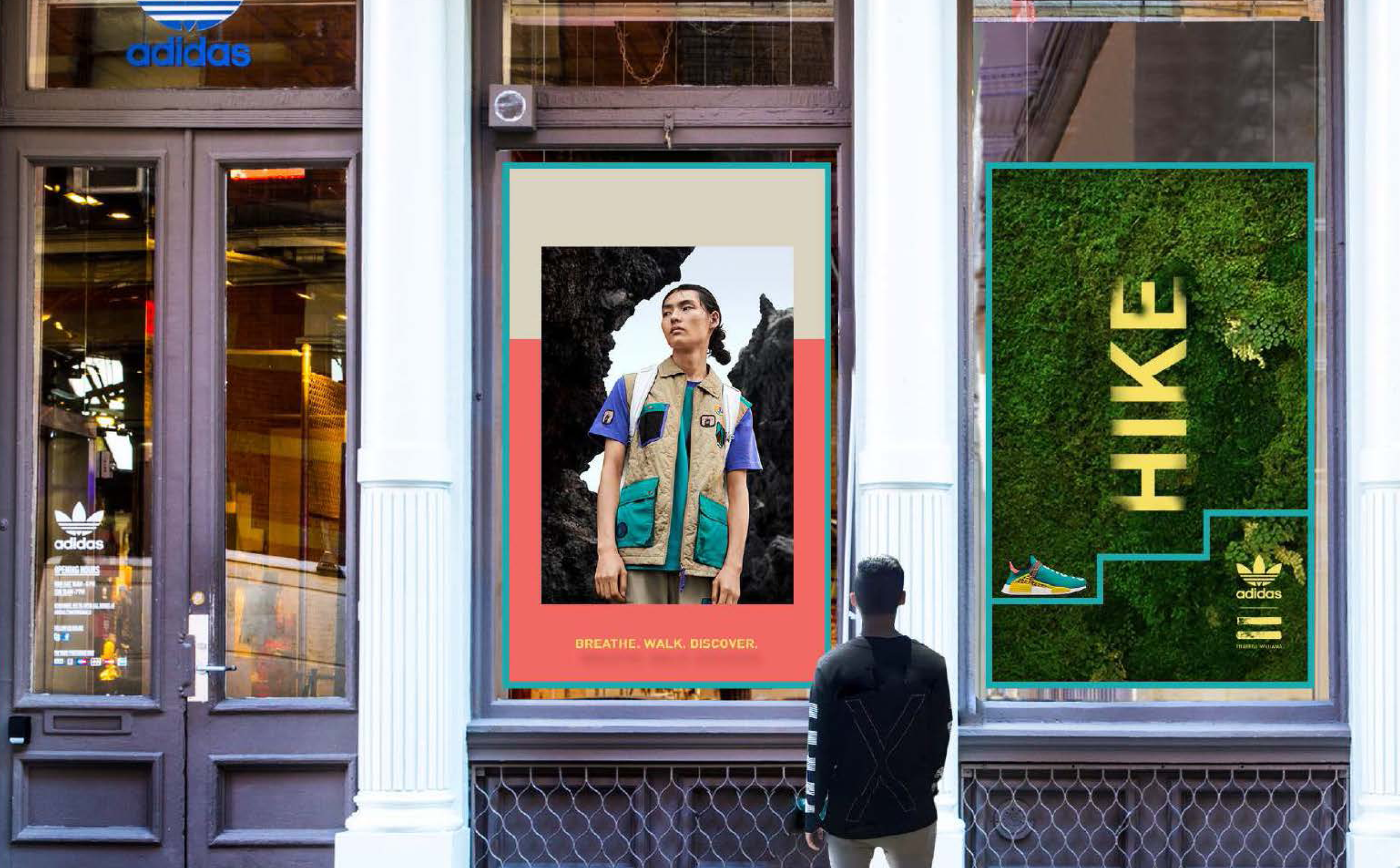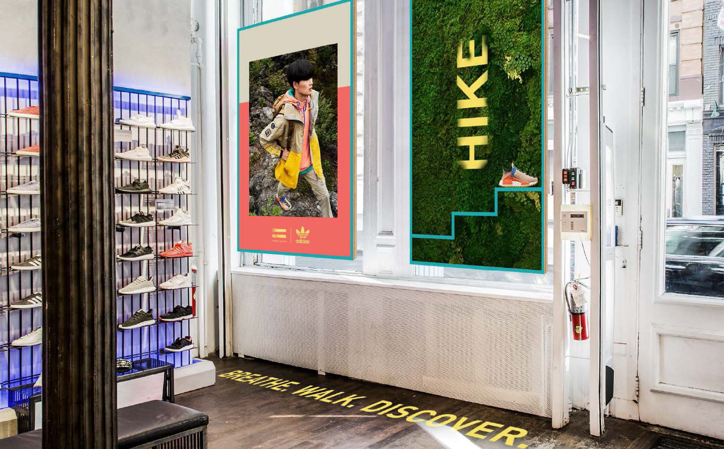 Retail windows incorporate living green panels, like this one at the adidas flagship store in SoHo, NYC.